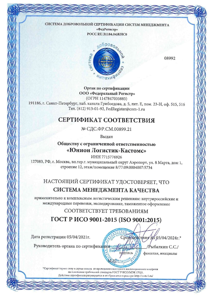 ООО «Тяньди Рус» настоящим письмом подтверждает, что ООО «Юнион Логистик-Кастомс» является нашим надежным партнером в сфере таможенного дела и логистики с 2015 г. ООО «Юнион Логистик-Кастомс» успешно предоставляет нам полный комплекс услуг по таможенному...ООО «СЕРНИЯ»